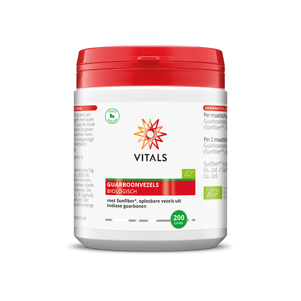De guarplant (Cyamopsis tetragonoloba) wordt in meerdere delen van India gekweekt, zelfs op plaatsen waar grote droogte heerst. De bonen en bladeren van deze plant maken al duizenden jaren deel uit van het Indiase voedingspatroon. Guarbonen zijn een rijke bron van oplosbare prebiotische vezels. In Guarboonvezels Biologisch van Vitals wordt gebruikgemaakt van Sunfiber®. Dit is de merknaam van guarboonvezels die door toepassing van een natuurlijk fermentatieproces hun superieure gebruiksvriendelijke eigenschappen krijgen, zoals een uitstekende oplosbaarheid in water. De gefermenteerde guarboonvezels van Sunfiber® worden wereldwijd beschouwd als de ideale vezels!